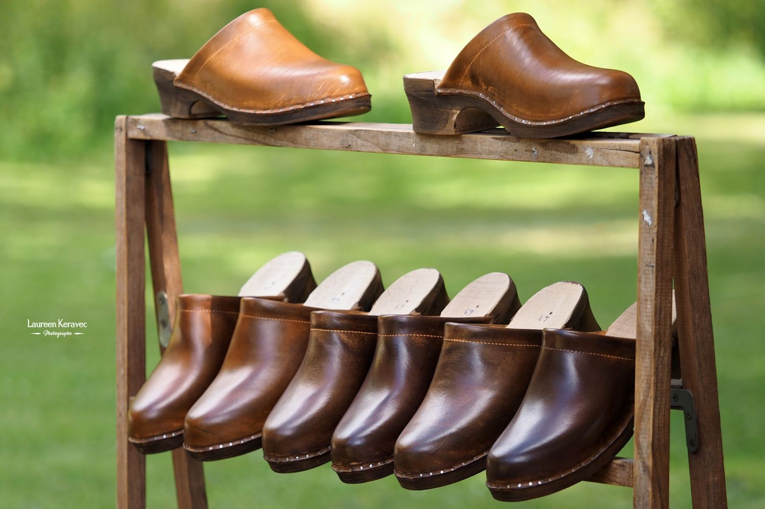 Dans notre atelier de la Tardière, nous fabriquons des sabots avec des semelles en bois de hetre, cuir pleine fleur et tannage végétal. Nos sandales, ceintures, pochettes et sacs sont cousus à la main. Nous apportons beaucoup de rigueur au choix de nos matières premières.