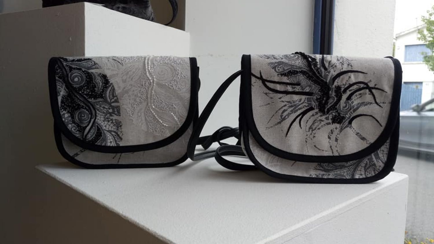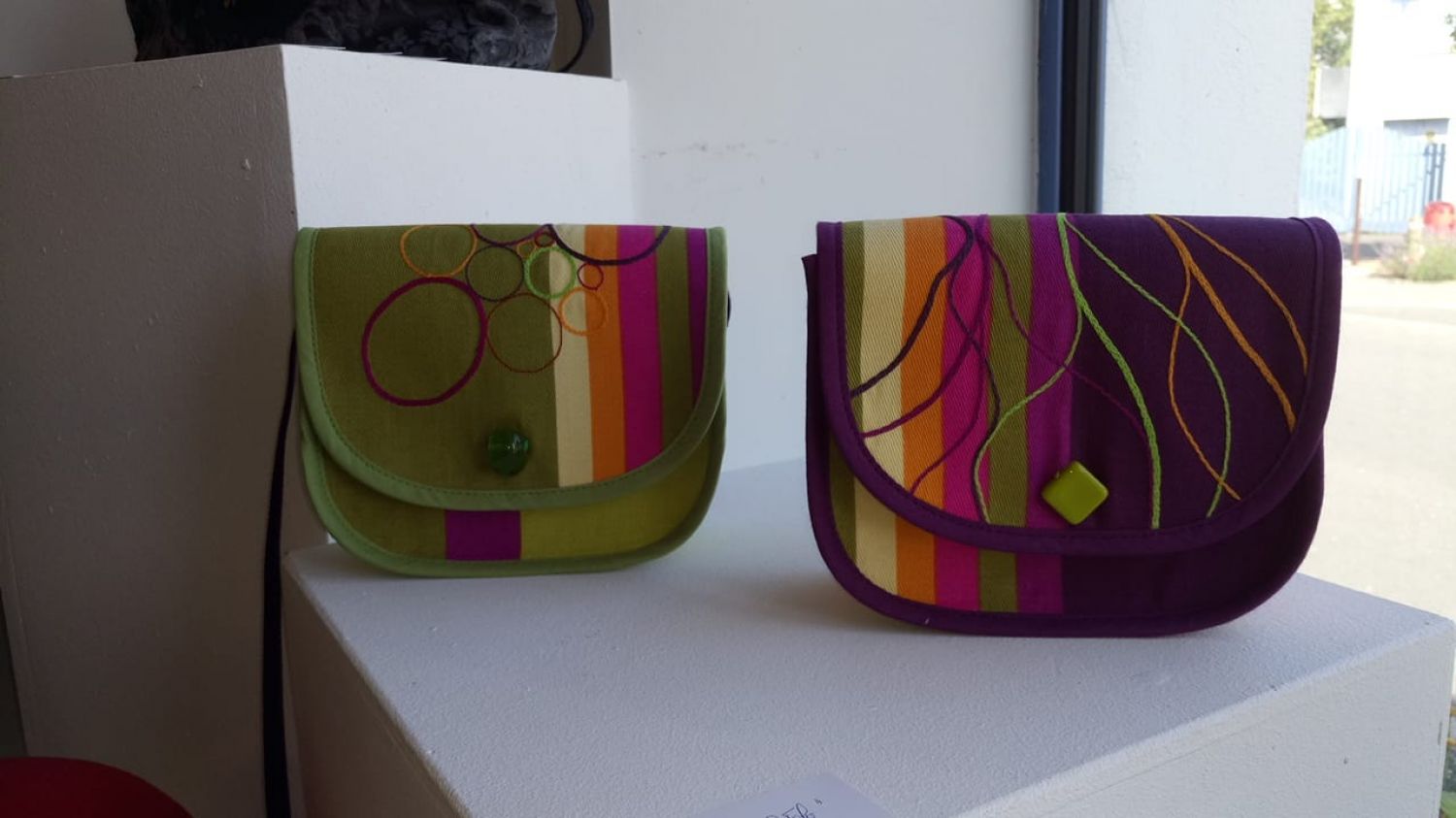 C’est là que je brode mes accessoires de mode ou de décoration : chapeaux, sacs, appliqués, broches, boutons, coussins, abat-jour. Et je crée maintenant des tableaux brodés.