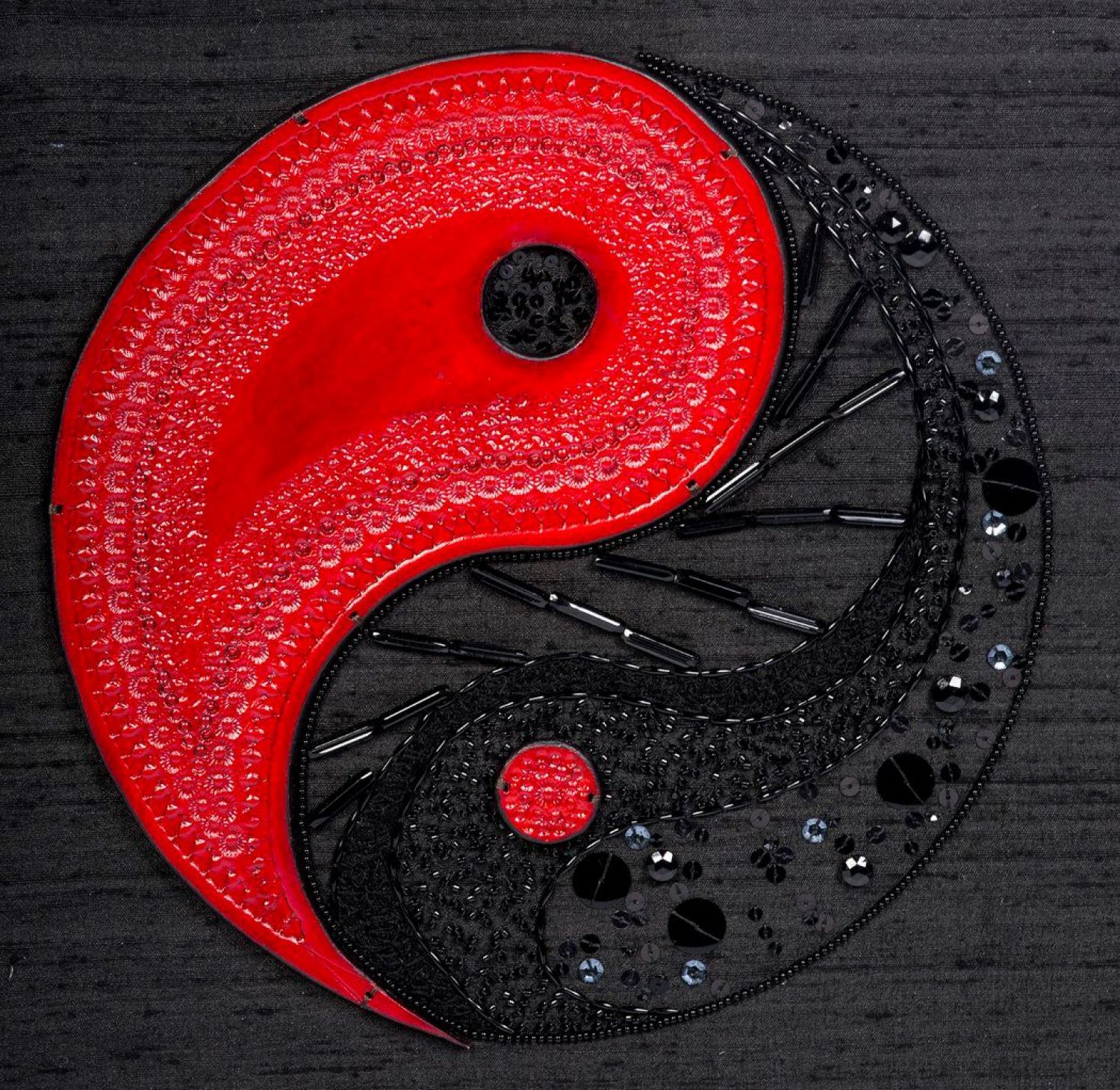 S’il m’arrive d’utiliser des fils de coton ou de lin, je brode le plus souvent avec des fils de soie : soie surfine, soie de Paris, soie d’Alger ou soie de Chine, tous ces fils chatoyants et doux à la fois ne finissent pas de me surprendre. Je redécouvre à chaque fois la profondeur et la beauté de leurs reflets. Et je ne me lasse pas de les mélanger aux perles, paillettes, cannetilles ou fils métalliques, rubans de soie ou chenilles, afin de créer des mosaïques de broderie.