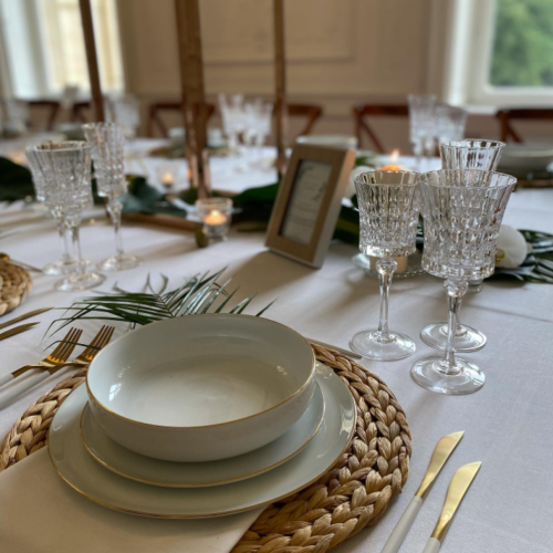 VAISSELLE, TABLES, CHAISES, LINGE DE TABLE, TENTES, MOBILIER LUMINEUX, MATERIEL DE CUISINE, …
