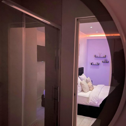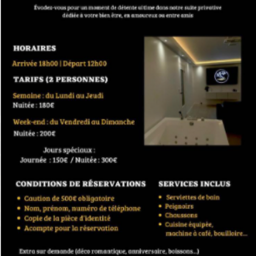 Vous pourrez y trouver un magnifique jacuzzi pour vous relaxer avec une chambre à coucher suivi d'une douche et d'une cuisine.